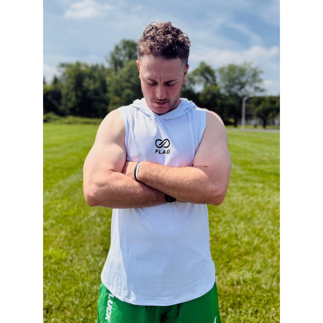 Our signature Sleeveless Hoodie design you know and love— now in WHITE OUT!
