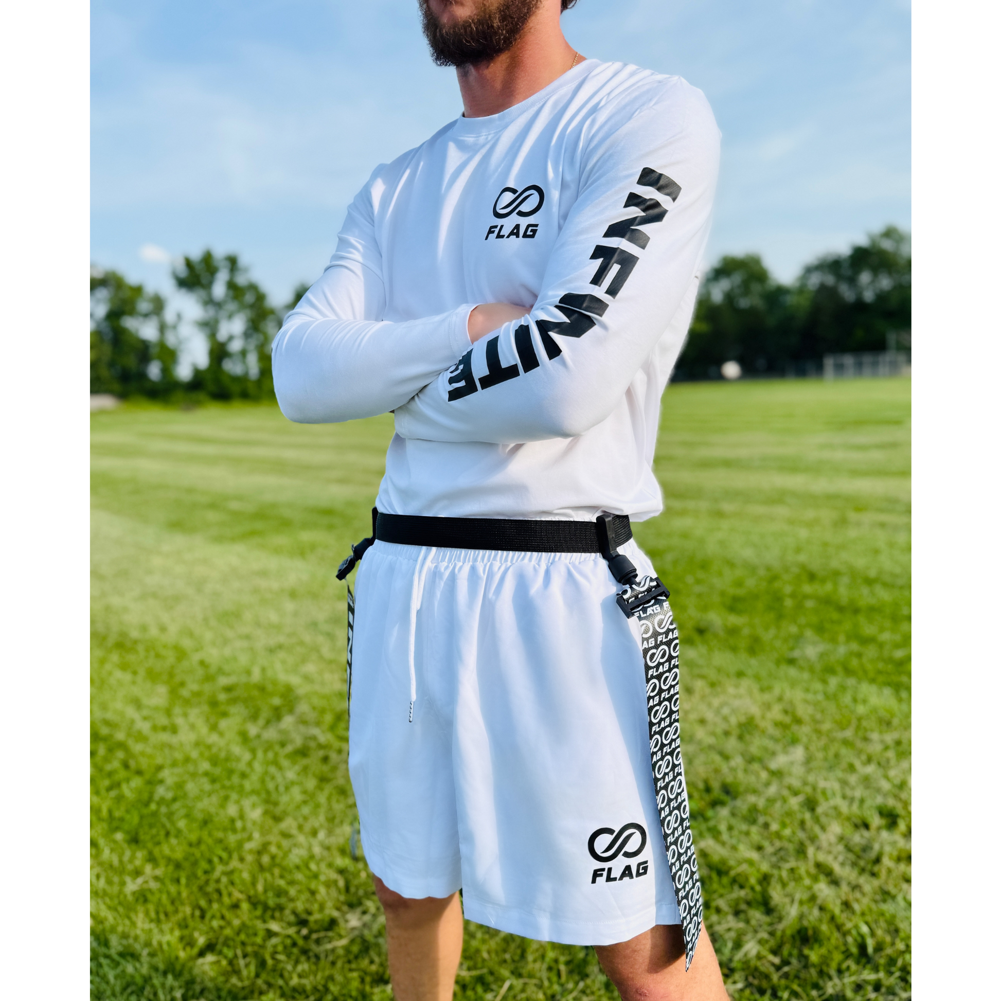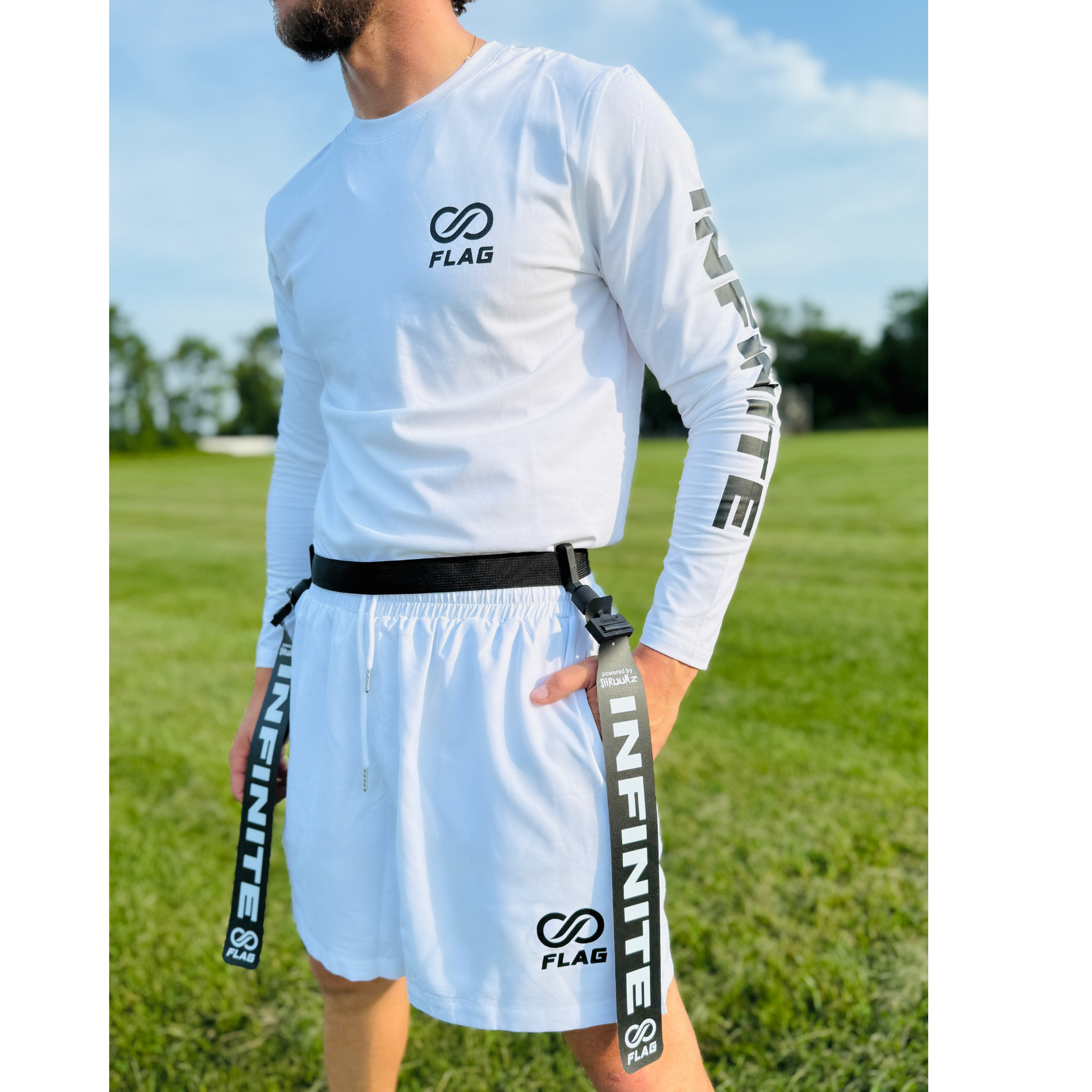 With our signature 5.5” zipper-pocketed shorts and performance long sleeve to create the complete look! Our White-Out Set is always restocked & always in-season!